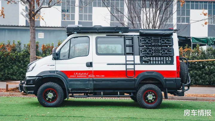 相信大家和我一样,第一眼看到这台车,就会被他的整体气场所吸引,虽然采用的是轻客底盘,但车身外部加入了不少只有在越野车上才能见到的改装套件,立马就提升了整车气场,不管是谁看到,都会会有这样的想法:车主一定是个硬核玩家!